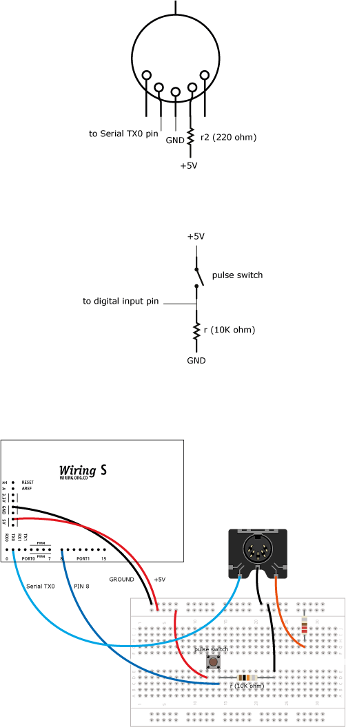 Siguiente >> Comunicando el hardware Wiring usando el protocolo MIDI usando un convertidor serial