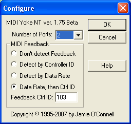 Después de instalar MIDI Yoke, es recomendable ir al panel de control y cambiar el puerto. Es necesario re iniciar después de cambiar el número del puerto.