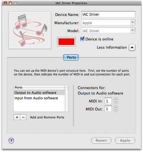 Al lado izquierdo abajo, de doble click en el puerto MIDI para editarlo y de click en + para adicionar el nuevo puerto.