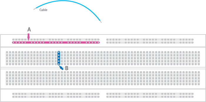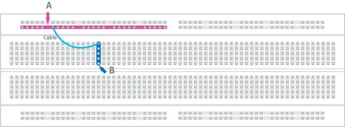 Para interconectar la línea seleccionada (nodo A) y la columna (nodo B) irá un cable desde cualquier hueco en la línea a cualquier hueco en la columna: